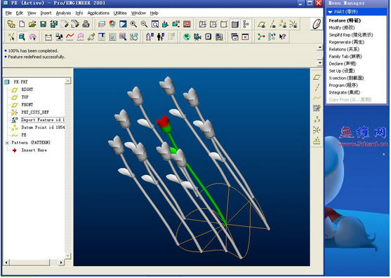 在中国也有很多用户直接称之为“破衣”。1985年,PTC公司成立于美国波士顿,开始参数化建模软件的研究。1988年,V1.0的Pro/ENGINEER诞生了。经过10余年的发展,Pro/ENGINEER已经成为三维建模软件的领头羊。目前已经发布了Pro/ENGINEER proewildfire5.0。PTC的系列软件包括了在工业设计和机械设计等方面的多项功能,还包括对大型装配体的管理、功能仿真、制造、产品数据管理等等。Pro/ENGINEER还提供了目前所能达到的最全面、集成最紧密的产品开发环境。