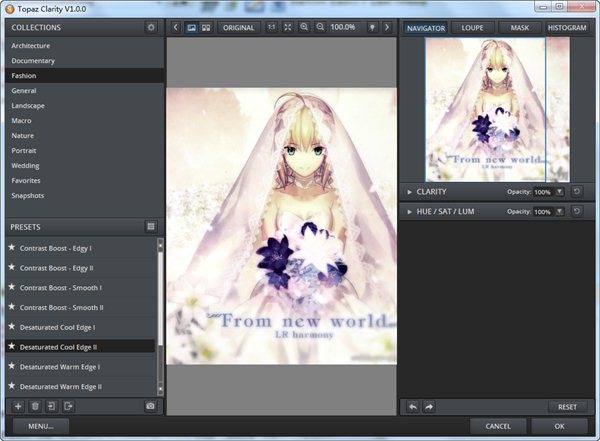 Topaz clarity是Topaz公司发布的一套对比度和色彩的智能调节PS滤镜,使用尖端的智能对比度技术,使得到的图片看上去完全自然。