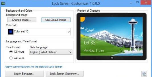 Lock Screen Customizer是win8锁屏定制软件,帮助用户定制自己喜欢的win8锁屏界面,用户可以修改时间格式,日期语言,颜色和锁屏画面的背景图片.