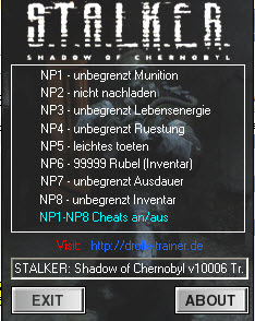 潜行者:切尔诺贝利的阴影八项修改器,是一款同名游戏的作弊工具,共有八个选项,充分满足玩家的需要,帮助你轻轻松松通过难关,享受轻松愉快的游戏乐趣。