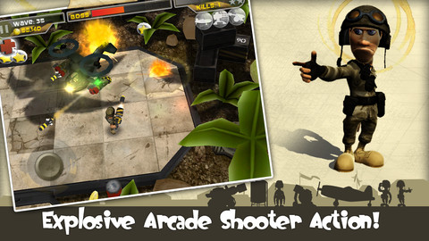 全面反击:Total Recoil是一款经典街机风格的3D俯瞰式射击游戏,精致的沙盘地形和Q版人物造型令画面显得非常可爱。游戏采用双摇杆操作方式,运用各种武器与敌人展开激烈战斗,场面非常激烈火爆。游戏武器库中有各种不同的武器,很多致命的武器可能会带来毁灭性的爆炸。游戏背景在石油钻井平台或者阴森的丛林,选择喜欢的游戏模式开始挑战,可选模式包括运营模式,挑战模式和无尽模式。拿下游戏,不断升级你的武器装备,利用武装直升机,大型坦克,地雷和更多的爆破通关。【游戏特色】