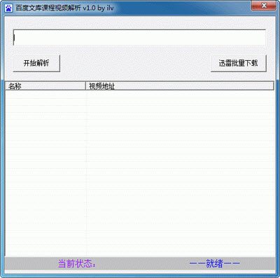 百度文库课程视频解析 1.0 绿色版 百度文库课程视频解析软件支持大部分百度文库免费课程视频的批量解析,批量下载(有一部分不支持,例如多贝公开课等),复制视频教程列表的任意一节视频地址到软件编辑框即可批量解析下载。