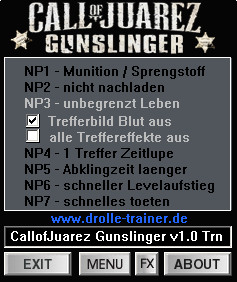 狂野西部:枪手V1.0-1.01七项修改器[drolle]是为同名游戏制作的修改器,能帮助您轻松完成游戏,起点提供狂野西部枪手修改器下载。