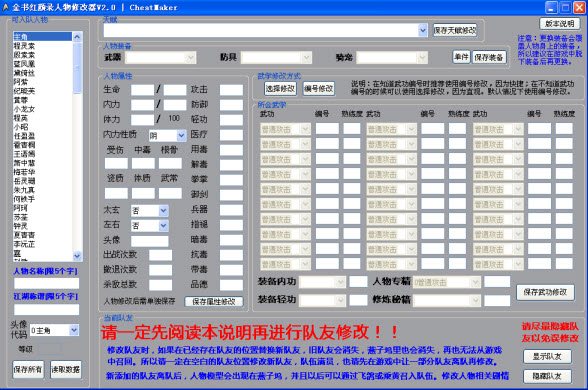 金书红颜录人物修改器,是同名游戏的一款多功能人物属性修改器,玩家可根据自身喜好及游戏水平有选择的修改人物属性,非常人性化的一款修改器,让你体验到轻松愉悦的游戏氛围。