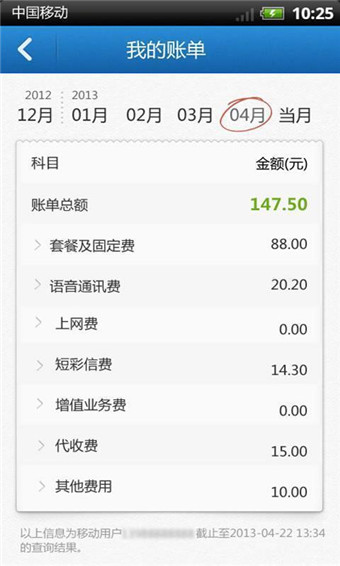 1.强大的查询功能:套餐余量、话费、积分、账单、个人信息、已定业务随时查询2.便捷的业务办理:办理套餐、增值包订购退订一键办理