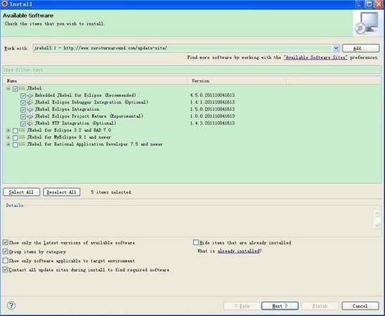 1.先安装压缩包里面的jrebel eclipse插件update-site.zip,安装方式google。