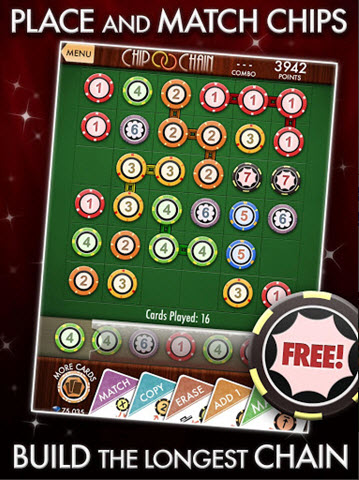 当你有3个或者更多相同相邻的筹码时你就配对成功。并且你会获得一个更高值的筹码。匹配链越长就能获得巨额奖赏。使用Power-Up卡片来获得配对链组合,延伸配对链,以及最大限度提升分数。