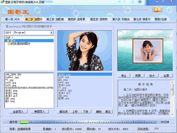 6、图片和背景播放可以按比例安排,使播放的图片和背景图片配合更圆满和谐。
