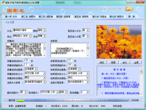 4、制作影片时,按提示操作点点鼠标就完成。如果你对影片有更高的要求,图影王高级版提供了较强大的编辑功能。