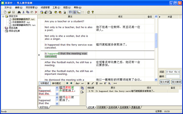 2. EBMT(基于实例的机器翻译)和TM(翻译记忆)两种技术相结合,充分发挥翻译记忆库的作用;