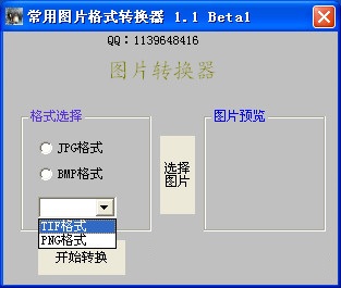 常用图片格式转换器 (jpg转tif)1.12 绿色版 图片格式批量转换工具,支持:Bitmap、JPEG、PNG、TIF、PPM等5种图片格式,可以轻松转换图片格式。(源文件只支持Jpg格式和BMP格式,目标文件支持5种格式)