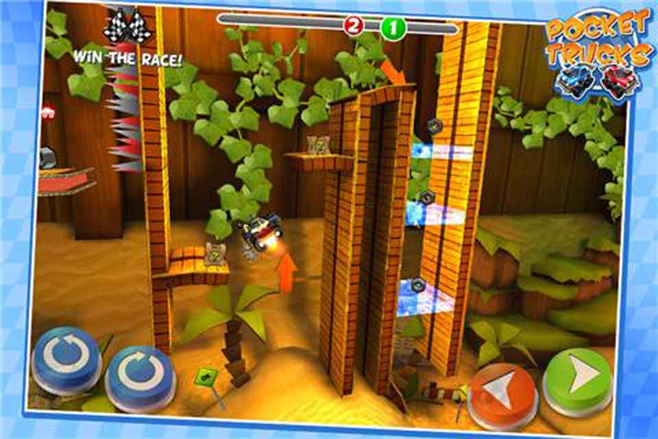 口袋卡车:Pocket Trucks是一款第三人称越野赛车游戏,它立体精致却又可爱亲切的风格,在场景、车子和障碍物等设备,都富有童趣风格,让人眼睛为之一亮。若是你认为这款游戏,能够轻松靠冲油门就可以悠哉破关,你就大错特错。游戏偏向休闲风格,但不仅仅只有竞速,还结合了益智的特性,辅以优质的画面和轻快的音乐,让整体游戏耐玩度上升,可以说是难度相当循序渐进,对于新手至资深玩家,都具有其吸引力。玩家需要操控预设的赛车,一路闯关收集物品,并突破障碍到终点。赛道也不是一成不变,在各种地形高低起伏的关卡上,有各式的陷阱、障碍或辅助道具(如翅膀、火箭还有弹簧),考验着玩家如何运用小聪明来过关。【游戏特色】