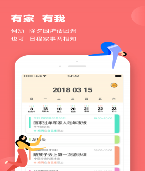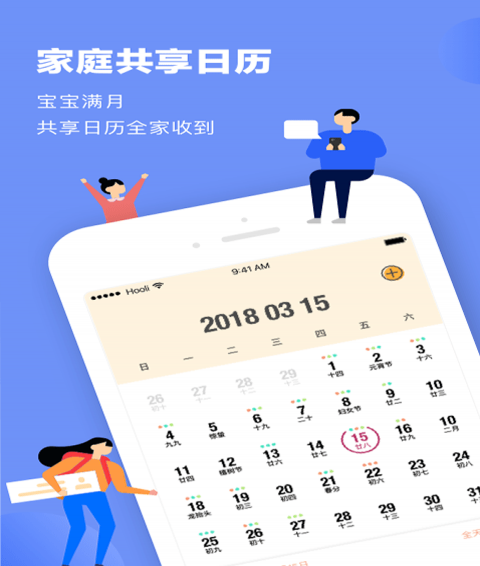 家庭共享日历:全家人,让你不错过每一个充满欢乐感动的日子!宝宝满月,妈妈生日,结婚纪念日……每一个家庭大事都可以通过共享日历提醒你的家人;