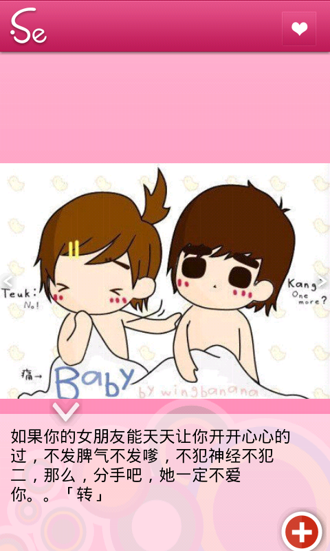 3,屏幕右下角的菜单键可进行图片收藏,顶图,踩图,评论,设置等功能菜单,在设置里面可进行帐号登陆,清理缓存,用户反馈,版本升级等功能