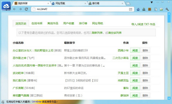 多任务下载首款多任务同时工作的小说下载器,允许您接着上次的任务继续下载,完善的小说管理界面。