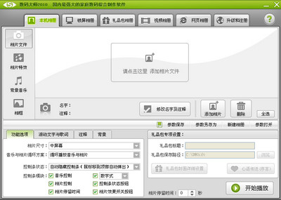 1、家庭本机数码相册制作:“本机电子相册”可轻松将您喜欢的图片,数码相机拍出的照片等进行数码变换处理,配上动听的背景音乐、众多专业图像特效、独特的文字特效和丰富的注释功能等,制造出一流专业效果的家庭数码相册。