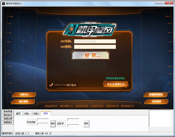 易学机甲旋风辅助是专用于机甲旋风游戏的辅助工具,最新0.4版发布了,更新了连发功能,本辅助同时还支持秒杀、无限暴击、仿CE等功能,当然还有更换频道、刷新游戏、清理白屏、清理缓存等常用操作,功能强大!