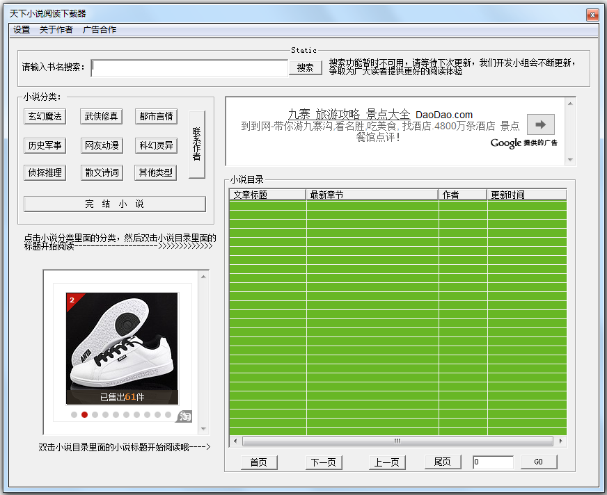 天下小说阅读下载器提供了海量网络小说的下载和阅读,界面简洁,使用方便,双击小说目录里面的小说标题即可开始阅读了,但请不要随便删除目录中的TXT文件,删除后可能会导致软件不能阅读。