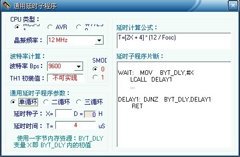单片机延时计算小程序(通用延时子程序),很方便的一个小工具,绿色单文件版。