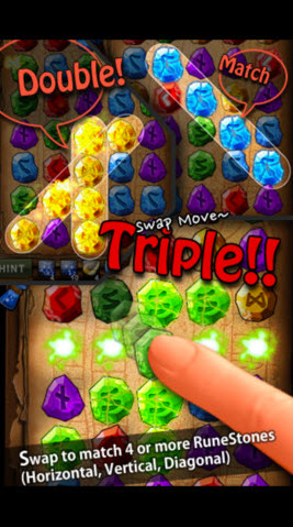 符文大师(RuneMaster Puzzle)是一款有趣的益智类宝石消除游戏,不同于传统三消的是不仅上下左右可以消除,这个还支持 45 度角地消除。每关会有步数限制,屏幕上方有能量管,每走一步会消耗一些,玩家可以通过消除那些闪闪发光的符文获得能量奖励。