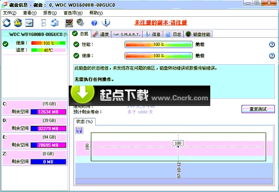能够检测硬盘状态、健康程度、以及性能其中包括每个硬盘的温度S.M.A.R.T值等。本工具同时还可以测试硬盘的实时传输率以便用来做为性能测试或者硬盘是否有隐含问题的功能。