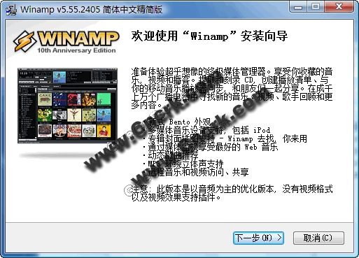 Winamp Pro V5.58 build 2933 标准版 烈火汉化安装版 Winamp 是一个非常著名的高保真的音乐播放软件, 支持 MP3、MP2、MOD、S3M、MTM、ULT、XM、IT、669、CD-Audio、Line-In、WAV、VOC、AVI、OGG、WMV、MPG 等多种音频和视频格式。可以定制界面 Skins, 支持增强音频视觉和音频效果的 Plug-ins, 通过一些非常实用的扩展插件来增强其功能。