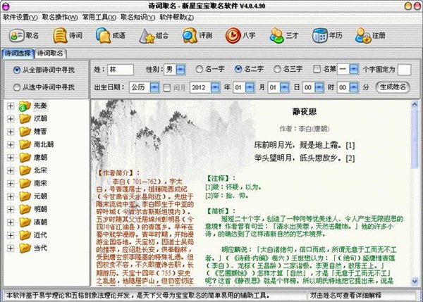 5. 支持诗词取名模式,可以从多达上万首古典或现代诗词中找出又高分又有诗情画意的好名字。