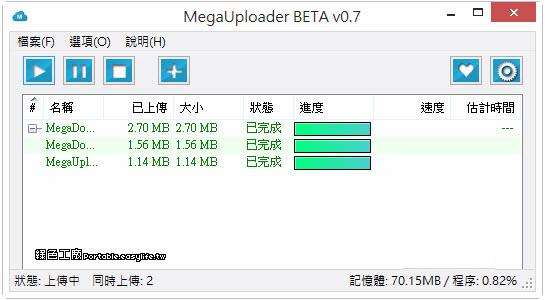 MegaUploader 0.7beta 绿色版 Mega上传工具(MegaUploader)是一款mega空间的数据上传工具,具有免费界面简单没有广告的优点。