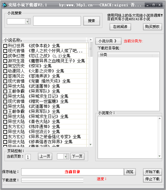 完结小说下载器提供网络上的各大完结小说资源库,目前共有465141本小说供你阅读,科幻、言情、战争、同人、武侠等热门小说一网打尽,本版本为破解版,完全免费使用。完结小说下载器是国内首款自动搜寻网络全本小说或者完结小说的TXT资源,然后采用迅雷专属通道进行下载。