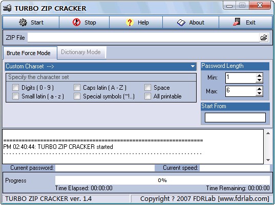 ZIP密码工具,支持由WinZIP、PKZIP以及其它兼容ZIP格式的软件(比如WinRAR等)加密的ZIP压缩包,软件支持双重模式:暴力/字典,也具备断点续破等高级特性。
