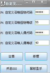 3.在辅助界面处先自定义召唤人偶、怪物等级和呼出按键代码即可。