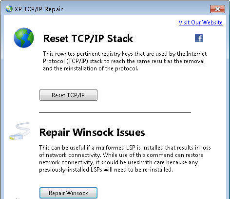 一些病毒木马在自身被清除出操作系统之后,会留下“后遗症”,比如常见的现象就是网络无法访问,另外,不正确的使用一些网络优化软件也可能会遇到这种“软故障”。当你碰到这种情况时,可以试试这个网络协议修复小软件,它能修复你的tcp/ip协议栈和winsock lsp,将其恢复到初始状态,从而解决网络访问问题。请注意,它可能会导致你的网络设置丢失,仅做为最后手段使用.