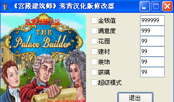 宫殿建筑师修改器+7 汉化版 宫殿建筑师七项修改器是一款同名游戏辅助修改工具,功能强大,操作也很便捷,添加了金钱值、满意度、花园、建材、装饰、玻璃以及超级模式等修改功能,从各个方面给玩家提供帮助,让你享受轻松愉快的游戏氛围,还在等什么呢,快来体验吧。
