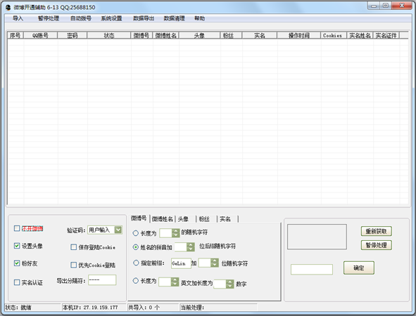 支持导入导出Cookie、实名认证、优化粉丝等。
