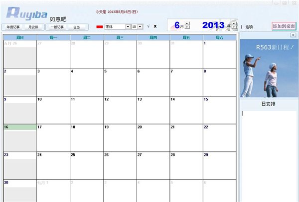 如意吧日程安排是一款实用的电脑桌面的小工具;它拥有简洁易用的日程安排,记事本,桌面日历.直观的记录工作行程等等功能;是工作安排的好助手!欢迎下载使用。