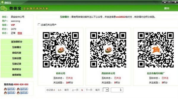 微信宝是最好的微信互粉软件,摒弃传统的微信二维码导航推广互粉方式,以软件方式运行,全自动为微信公众号互粉加粉,是一个集微信营销、微信交友的微信公众平台,玩微信,从微信宝开始。只要运行软件加入互粉,就可以使您的企业微信公众号获得上万的粉丝。