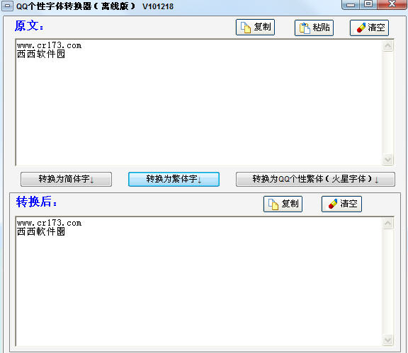 使用非常简单,只需输入文字,然后选择要转化的字体,有简体、繁体、和QQ个性火星字体