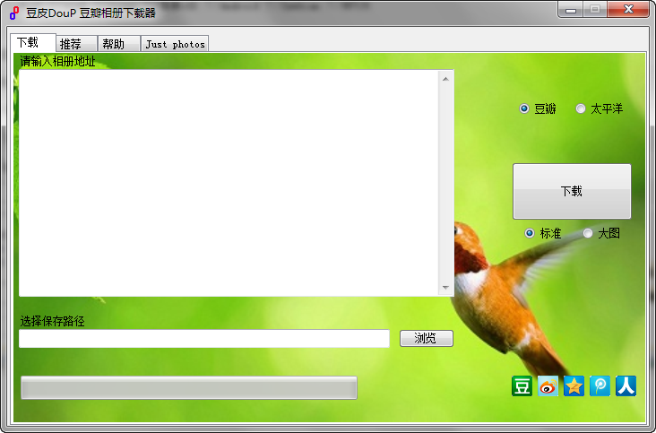豆皮Doup软件就是一款简单的相册批量下载工具,支持下载豆瓣相册、线上活动照片,太平洋摄影部落作品照片。