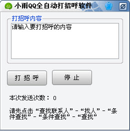 小雨QQ全自动打招呼软件 1.0 绿色免费版 小雨QQ全自动打招呼软件是一款搭讪利器,它的主要用途就是让你可以自动和陌生人打招呼发送信息,相信通过广撒网的方式,一定会让大家交到不错的异性朋友.