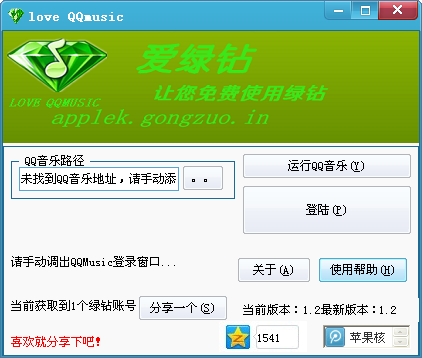 爱绿钻是作为畅绿钻失效后的最新一款免费绿钻使用软件,由苹果核制作,功能比畅绿钻更加强大。