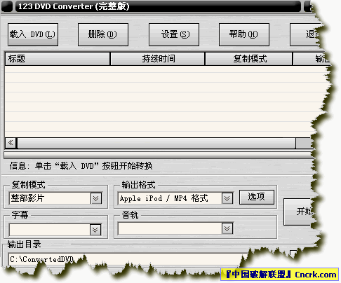 123 DVD Converter(DVD转换软件) V4.5.7.1绿色汉化版 DVD转换软件,可将整部DVD或一部分转换为其它格式视频文件复制到硬盘上,支持AVI (DivX, XviD, MPEG-4...), VCD (MPEG-1) 和SVCD (MPEG-2)等格式,同时也支持抓取音轨。