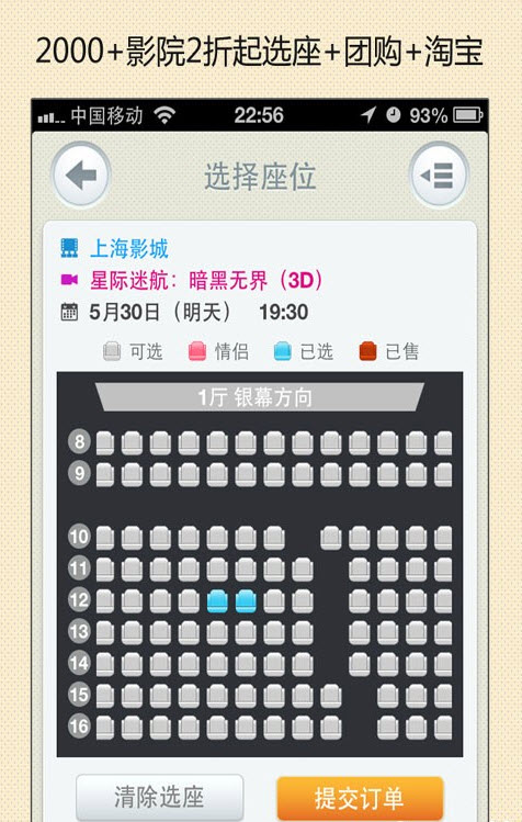 1.购买电影票(在线订座,电子券,团购)2.浏览正在上映的电影