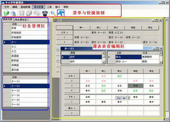 多个排课方案、多个课表操作、可视化规则、拖放式调课;