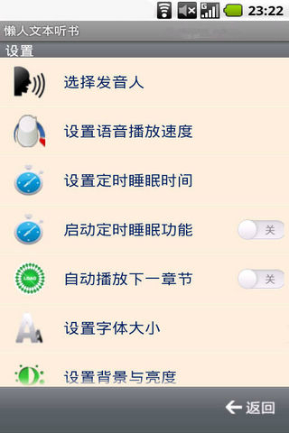 懒人文本听书支持看、听TXT格式书籍,目前提供言情、玄幻、都市、武侠、网游、历史、校园、灵异、科幻、剧情、名著、侦探、经典、教育、财经、健康、 纪实、短篇、哲学、笑话、诗文等几十万部内容,您也可以导入您自己珍藏的TXT格式书籍享受听\看书的乐趣。听TXT书支持android2.1以上版本。【常见问题】