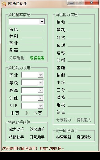 fs角色助手一款辅助街头篮球游戏的小工具。该软件里面包括了54个特殊游戏角色来供玩家参考,是很齐备的街头篮球学习资料工具。这款辅助非常不错的!用户可以考虑一下。