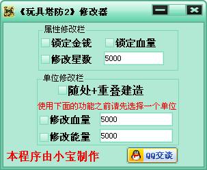 玩具塔防2修改器简单的多项功能辅助工具,其界面简洁,操作简单。功能强大。拥有无限生命,无限金钱,无限星星的修改功能!