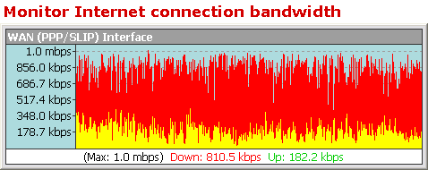 TCP/IP通讯协议下网络连结速度指示器,显示目前的上传与下传速率,对频宽作分析,只要你所在的LAN里的电脑有自己的IP,包括Cable、ADSL、LAN网卡,Bandwidth Meter都能够对该IP做流量统计监测。