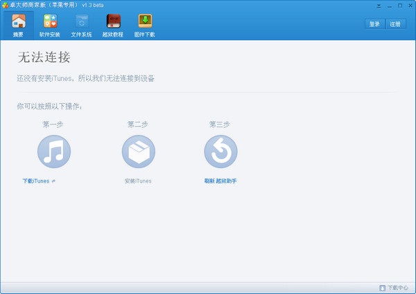 卓大师商家版 v1.4.2.1 苹果专用 卓大师商家版在连接iPhone/iPad后可以直接进行应用批量安装(注意需要先越狱),后期也会支持上正版安装,同时该软件具有应用卸载、系统文件操作等功能。还包含越狱教程、越狱工具下载、各型号与IOS版本的固件下载等方便财富用户的功能。