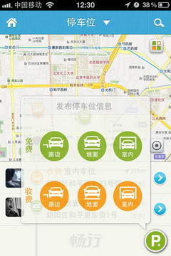 通过切换城市或者我的GPS位置信息,以及通过搜索地点或着挪动地图位置,轻松查看相应位置的周边停车位信息。而且还可以通过您的分享让更多的畅友受益无穷。