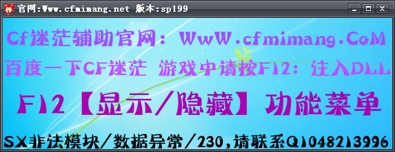 cf迷茫体验服一二三区变态辅助sp244 最新版 cf迷茫体验服一二三区变态辅助是专为穿越火线体验服制作的辅助工具,支持cf2.1.2最新版本,具备人物透视、方框自瞄、刀枪秒杀、原地复活、无后坐力、定点瞬移等上百种功能,欢迎下载体验。